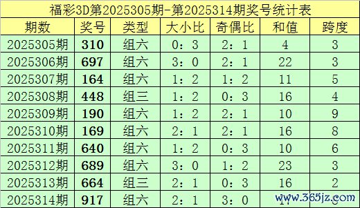 其中大小比2:1,奇偶比3:0,和值17,跨度8。